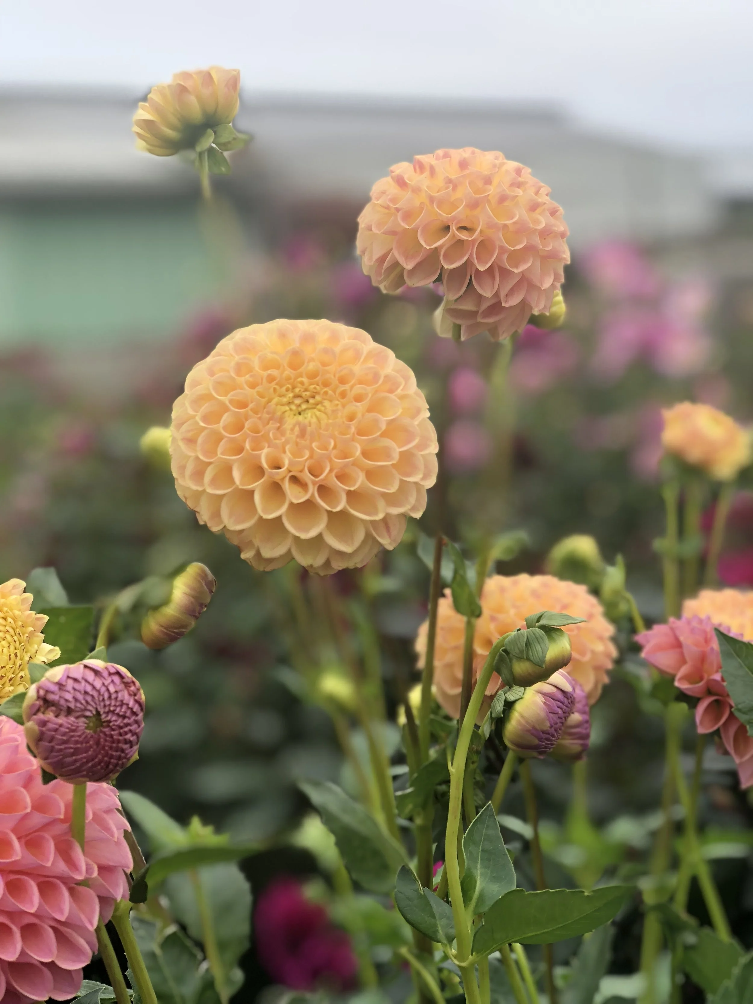 Dahlia Esli 995. A favorite with designers and market customers its 4-5 inch blooms are a beautiful mix of coral peach and apricot. Snoho Doris Award-winning and one of our top 5 favorites Snoho Doris is a vigorous upright grower with long strong stems and ball-shaped virtually weather proof flowers.